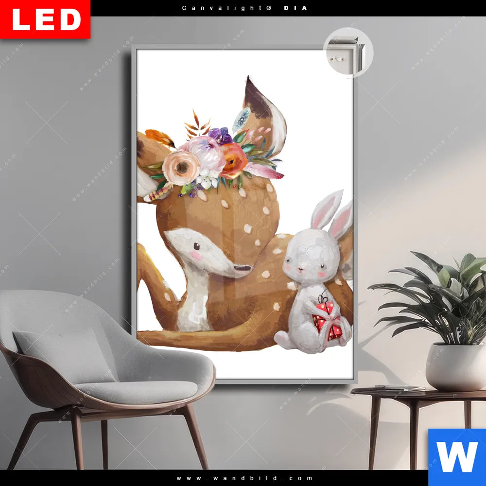 Canvalight® DIA Leuchtbild | Reh & Häschen | Hochformat