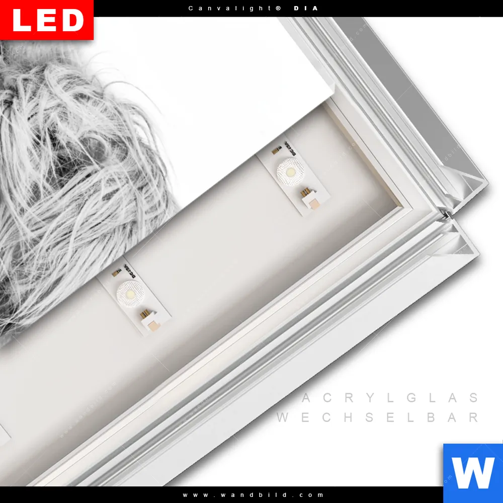 LED-Glasbild mit austauschbarem Acrylglas-Druck (Wechselbild)
