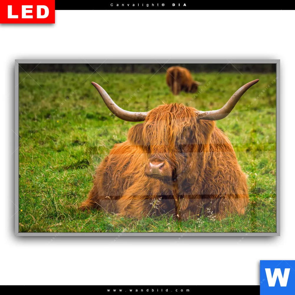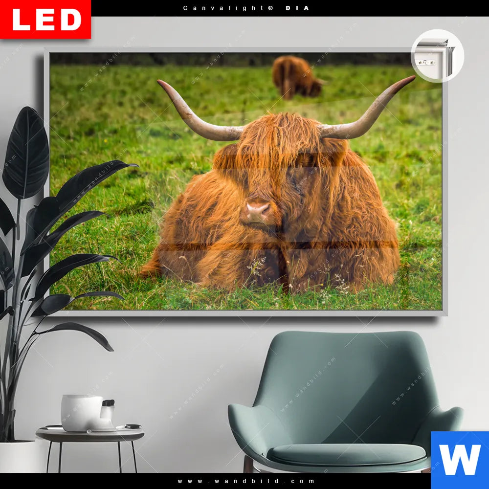 Canvalight® DIA Leuchtbild | Rind in den schottischen Highlands | Querformat