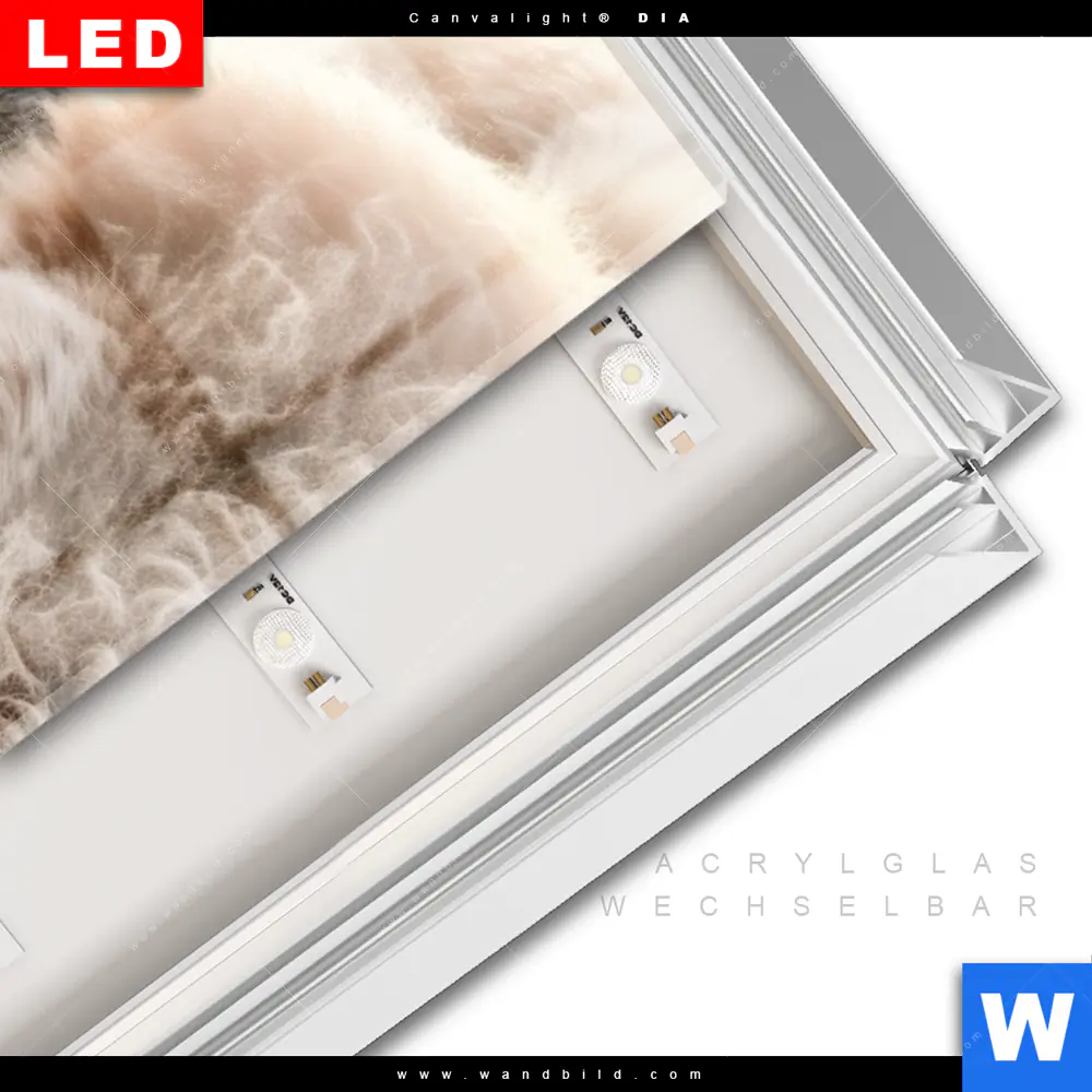 LED-Glasbild mit austauschbarem Acrylglas-Druck (Wechselbild)