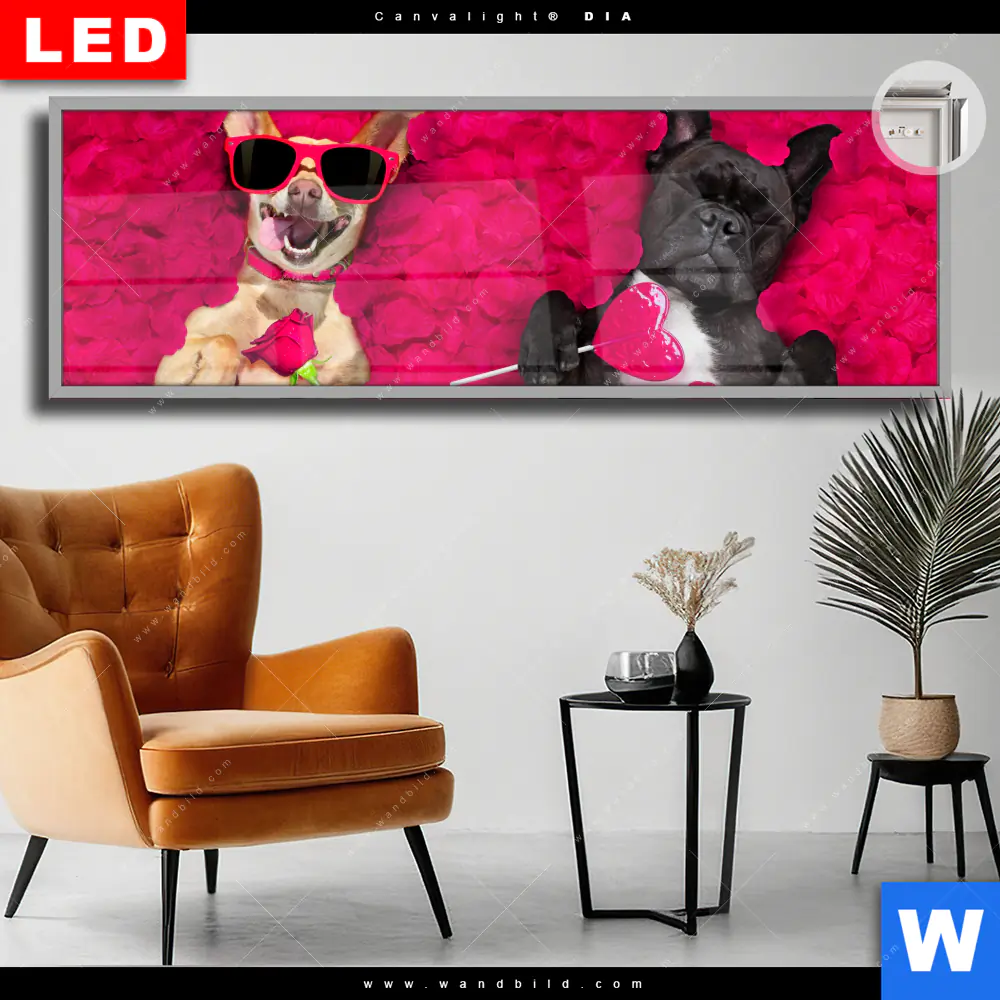 Canvalight® DIA Leuchtbild | Romantik mit süßen Hunden | Panorama