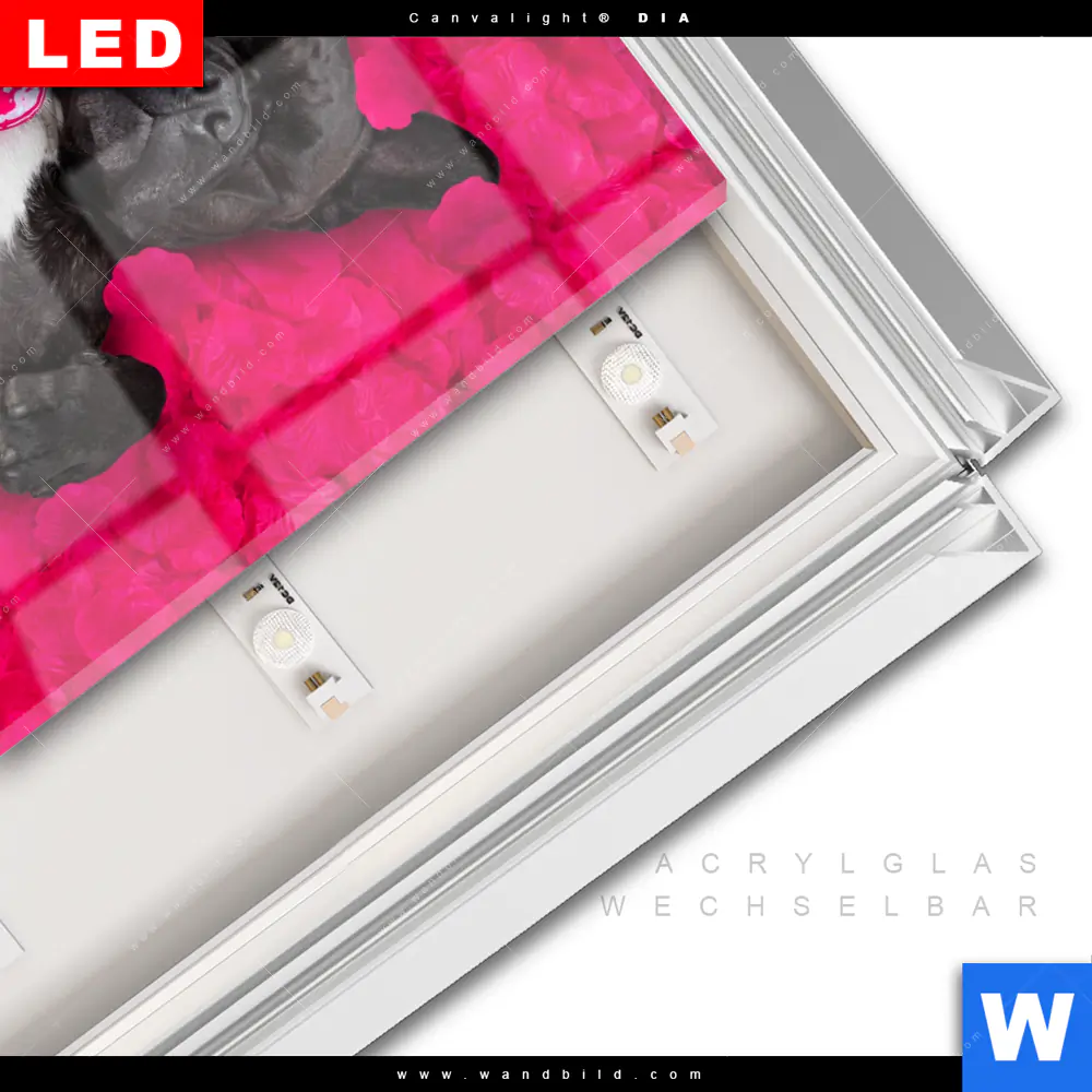 LED-Glasbild mit austauschbarem Acrylglas-Druck (Wechselbild)