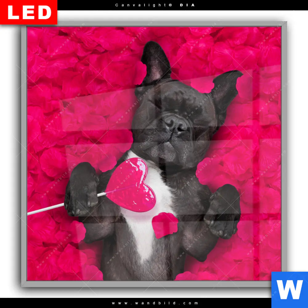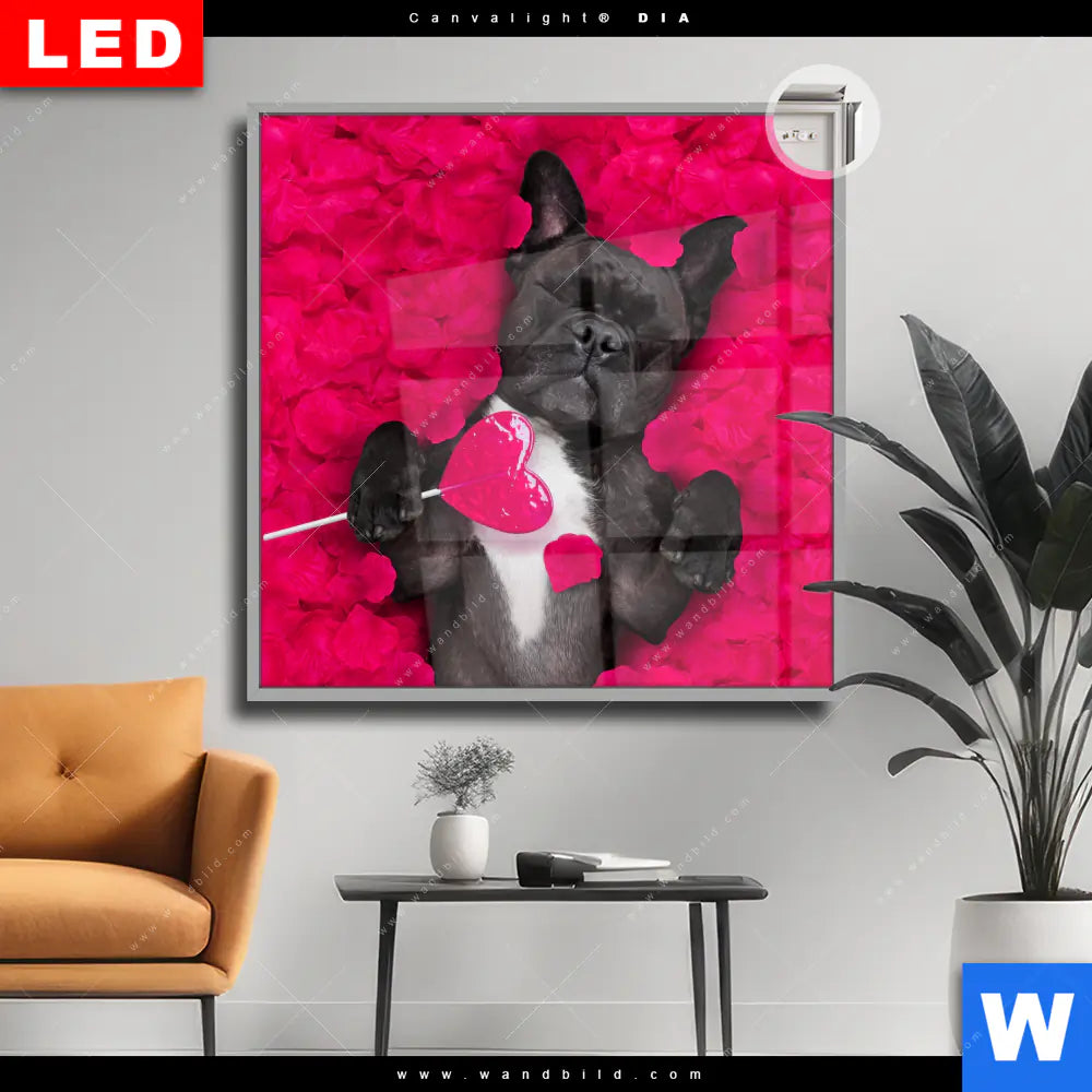 Canvalight® DIA Leuchtbild | Romantik mit süßen Hunden | Quadrat
