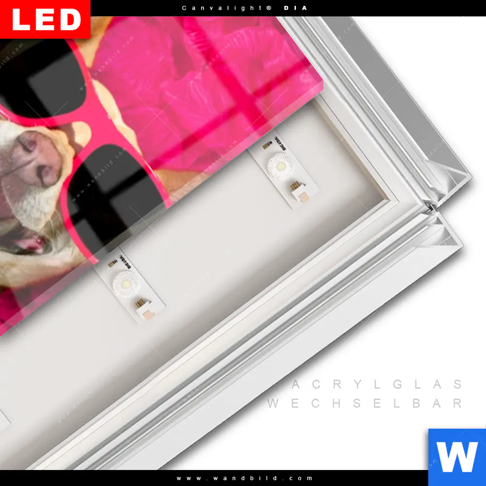 LED-Glasbild mit austauschbarem Acrylglas-Druck (Wechselbild)