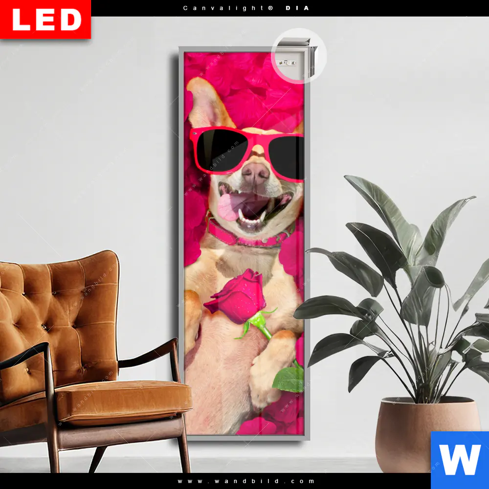Canvalight® DIA Leuchtbild | Romantik mit süßen Hunden | Schmal