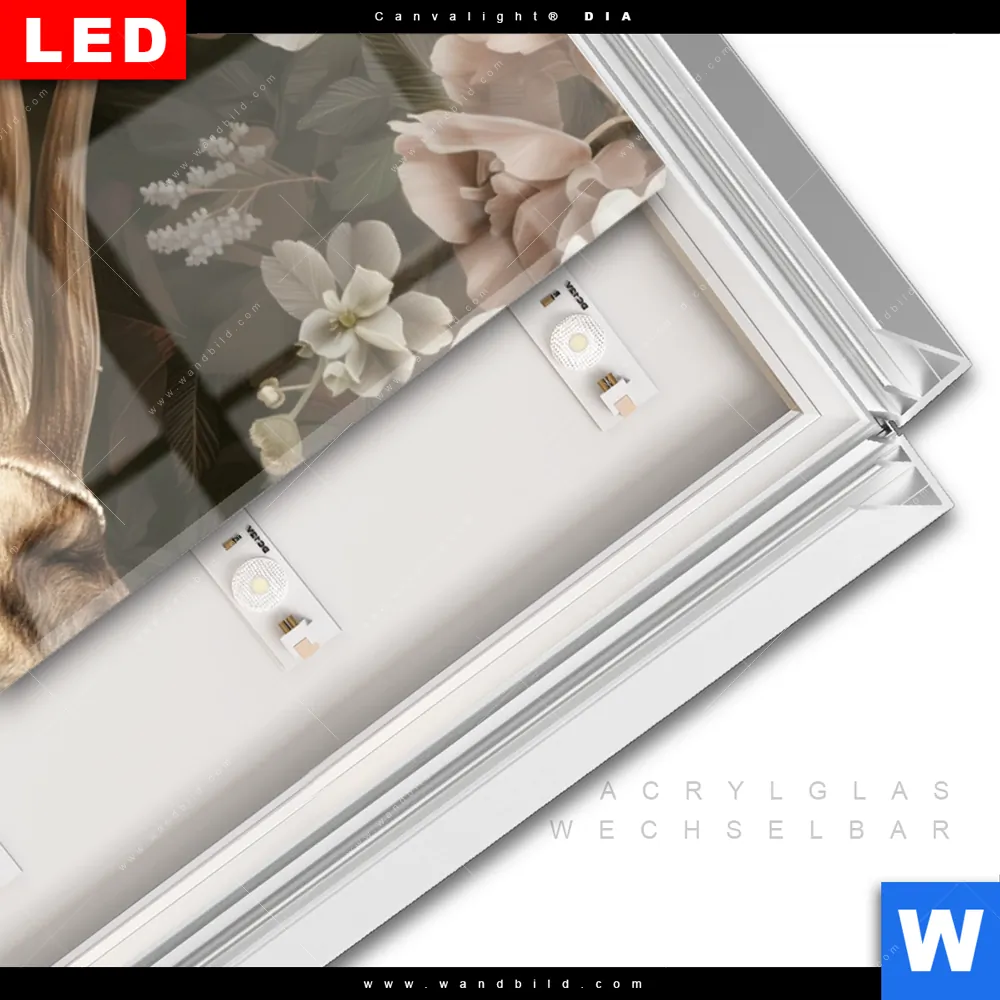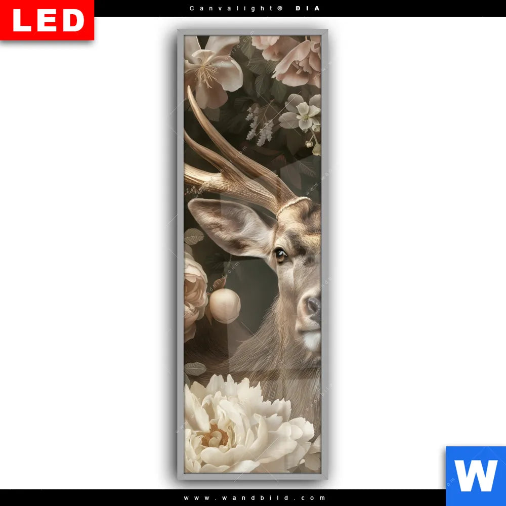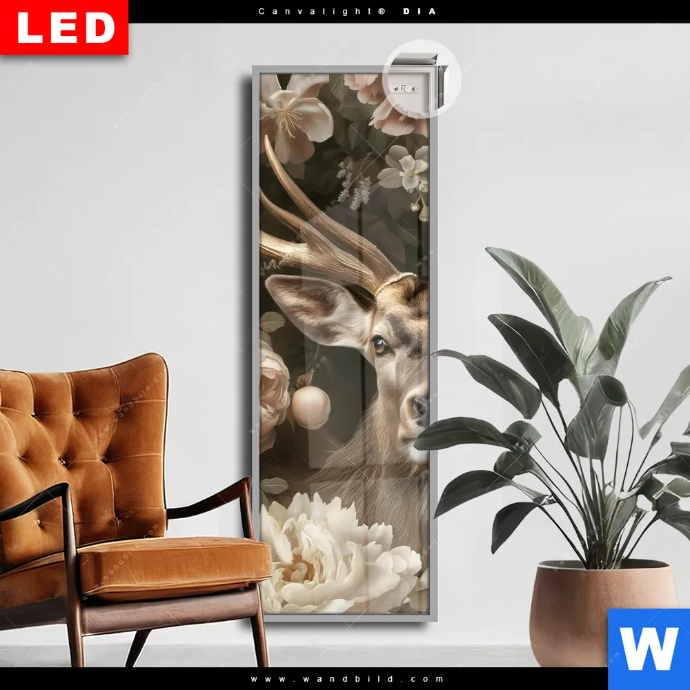 Canvalight® DIA Leuchtbild | Romantischer Hirsch mit Blumen | Schmal