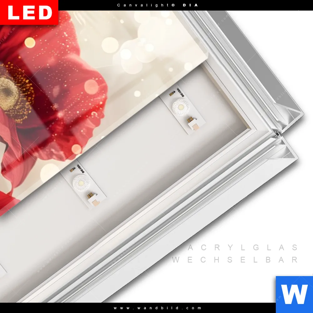 LED-Glasbild mit austauschbarem Acrylglas-Druck (Wechselbild)