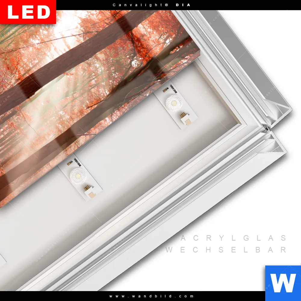 LED-Glasbild mit austauschbarem Acrylglas-Druck (Wechselbild)