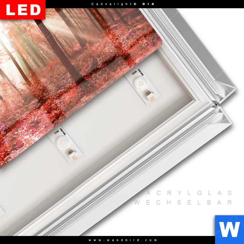 LED-Glasbild mit austauschbarem Acrylglas-Druck (Wechselbild)