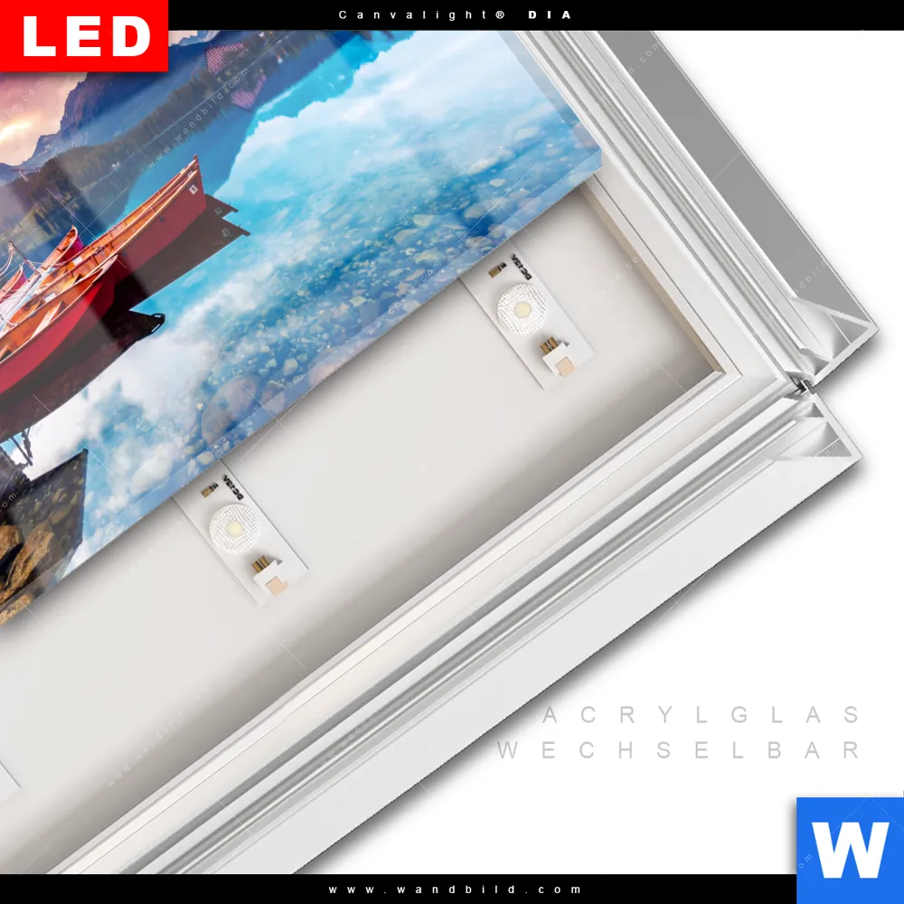 LED-Glasbild mit austauschbarem Acrylglas-Druck (Wechselbild)