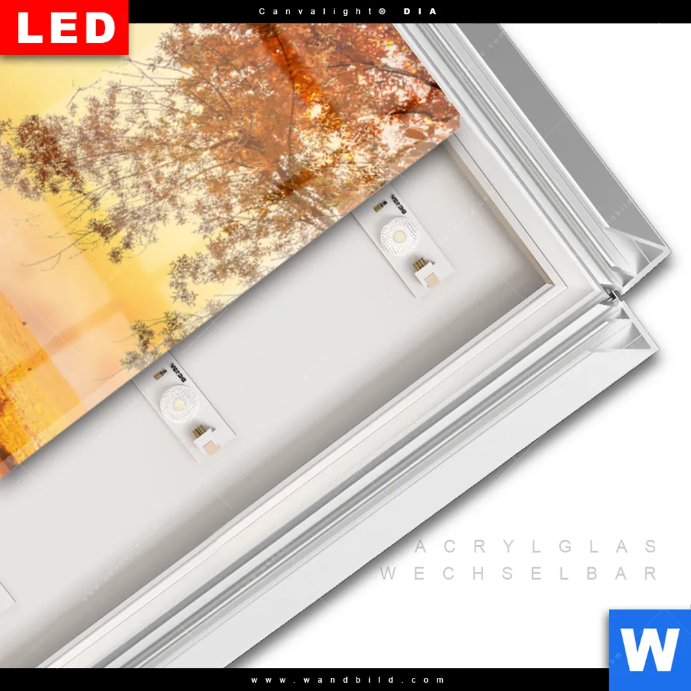 LED-Glasbild mit austauschbarem Acrylglas-Druck (Wechselbild)