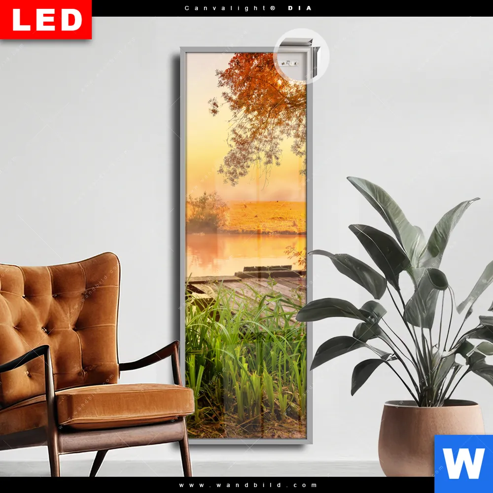 Canvalight® DIA Leuchtbild | Ruhiger Morgen am See | Schmal