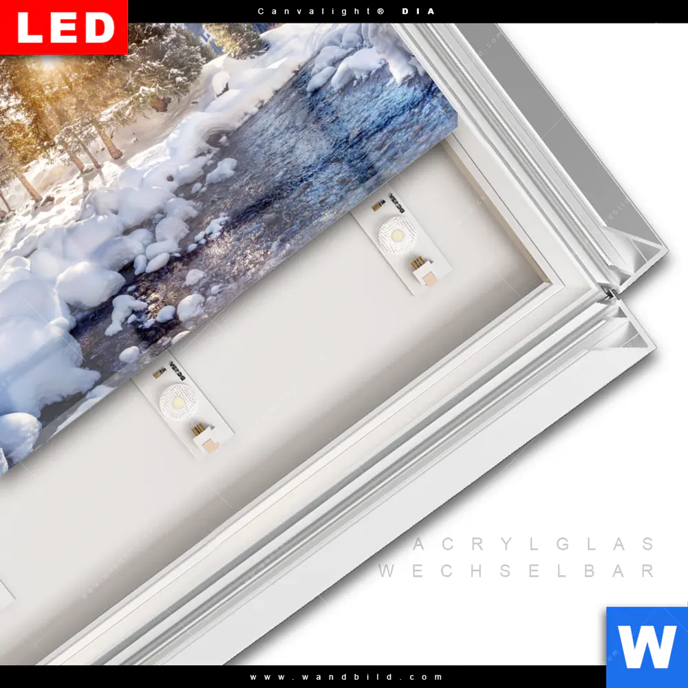 LED-Glasbild mit austauschbarem Acrylglas-Druck (Wechselbild)