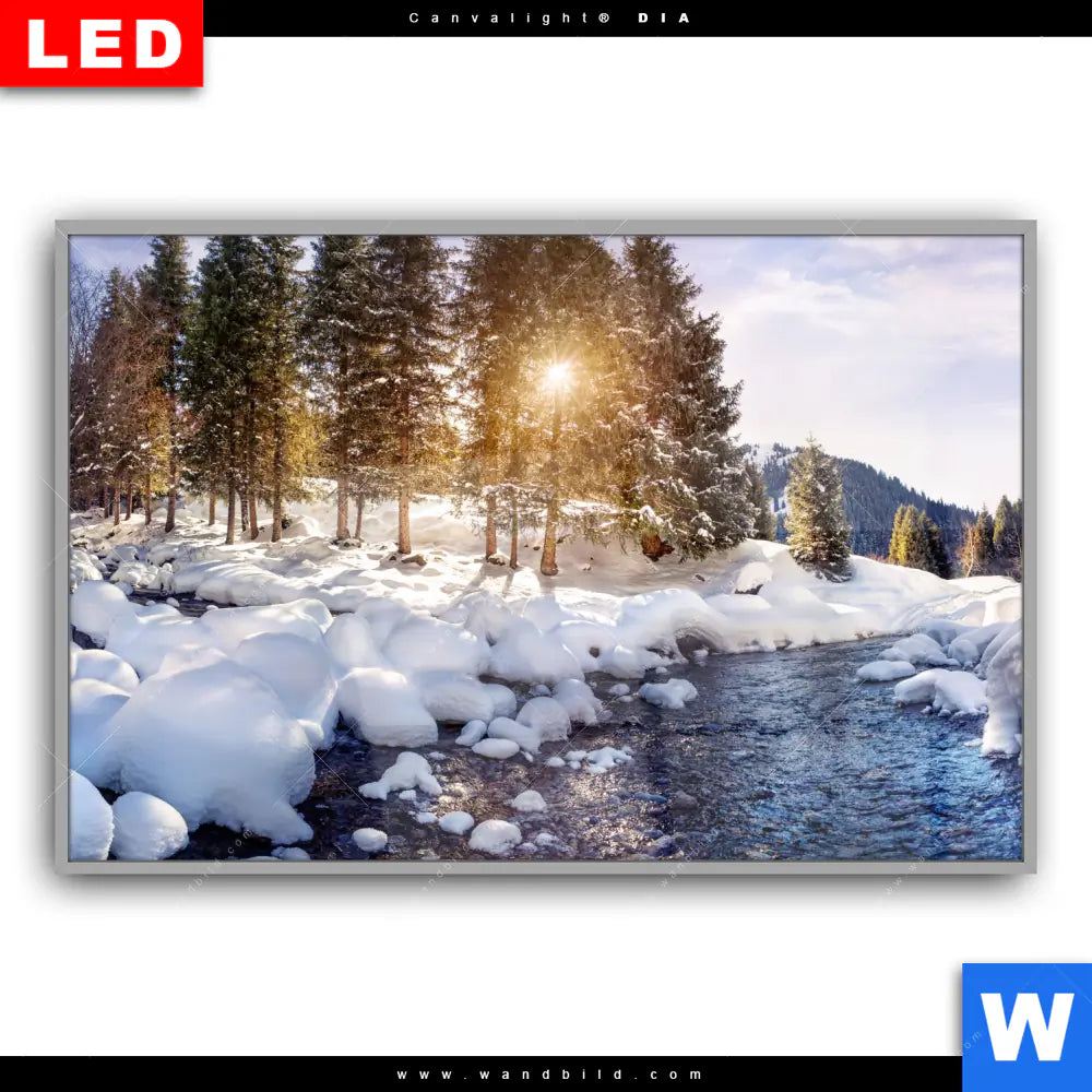 Canvalight® DIA Leuchtbild | Schneebedeckte Landschaft am Fluss | Querformat