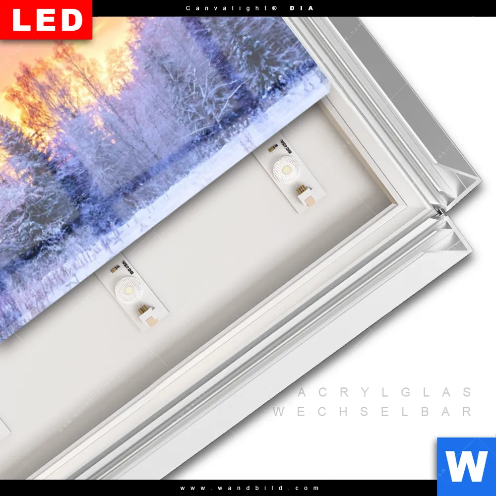 LED-Glasbild mit austauschbarem Acrylglas-Druck (Wechselbild)