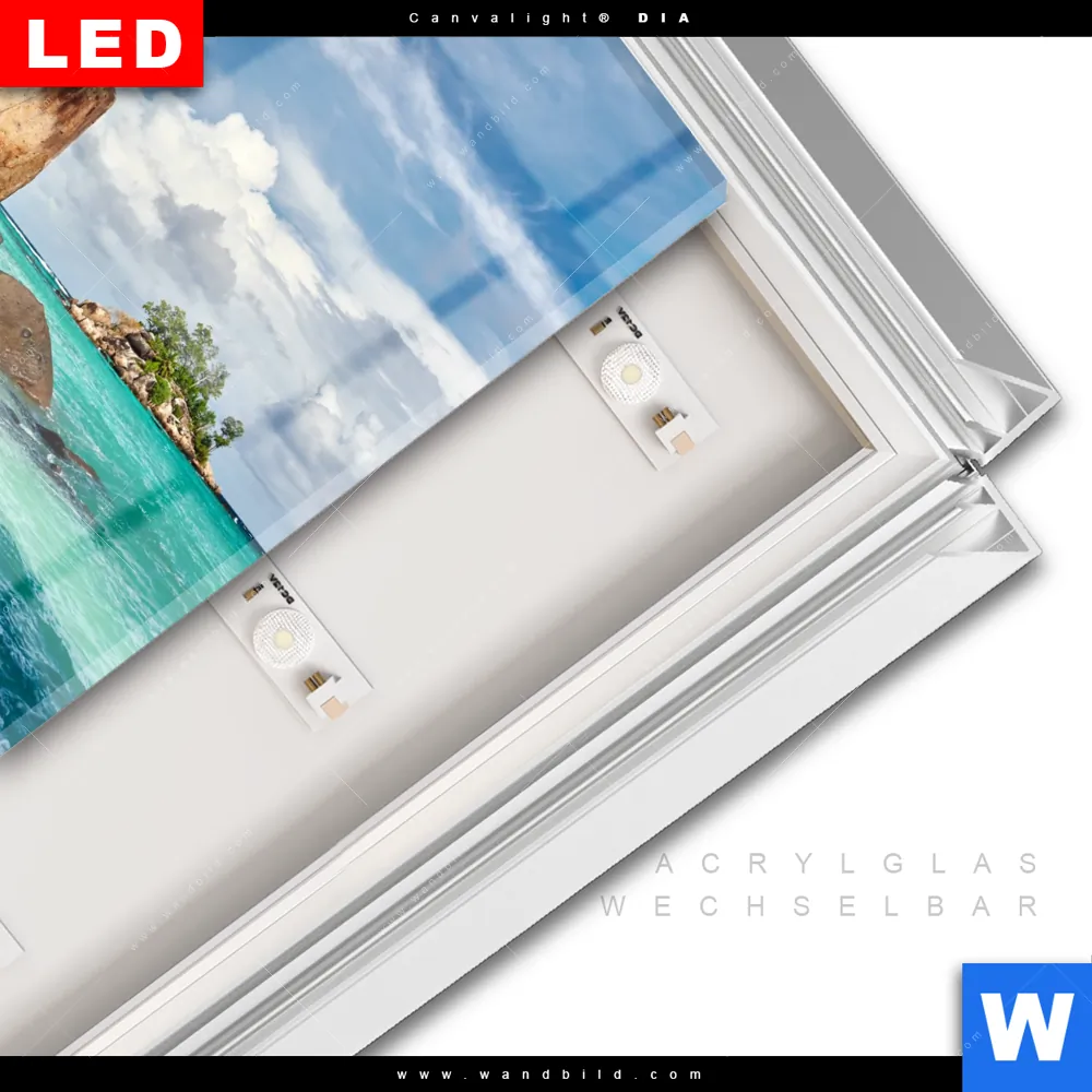 LED | Wechselrahmen-System | Acrylglas-Wechselbilder | DIA-Klapprahmen-Funktion