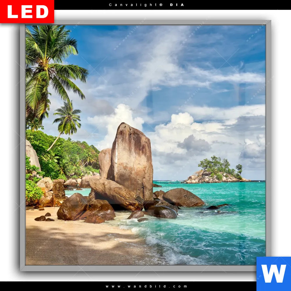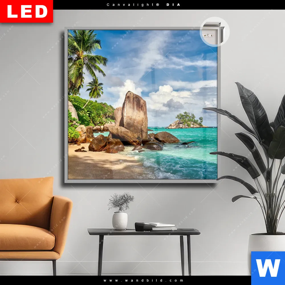 Canvalight® DIA Leuchtbild | Schöner Strand mit Palmen | Quadrat