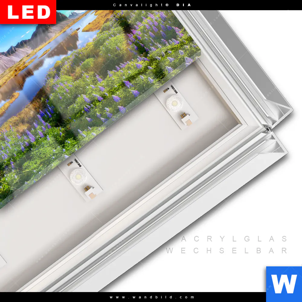 LED-Glasbild mit austauschbarem Acrylglas-Druck (Wechselbild)