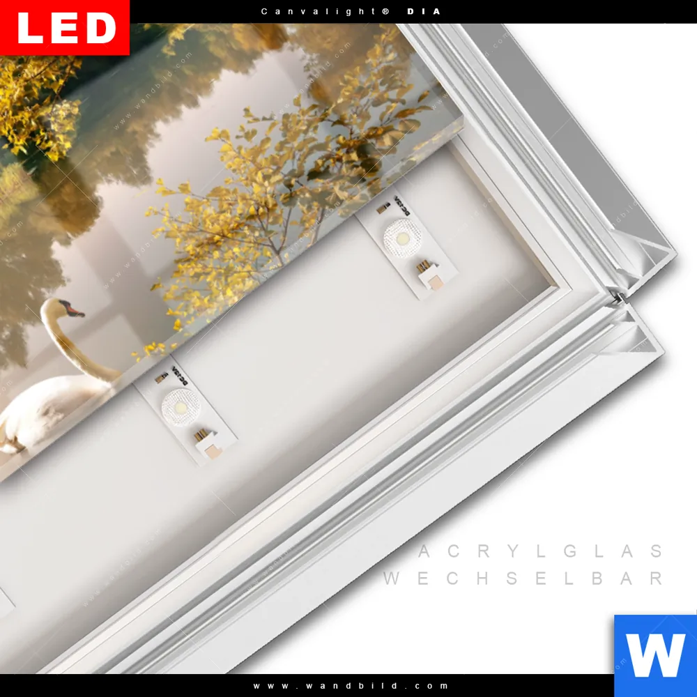 LED-Glasbild mit austauschbarem Acrylglas-Druck (Wechselbild)