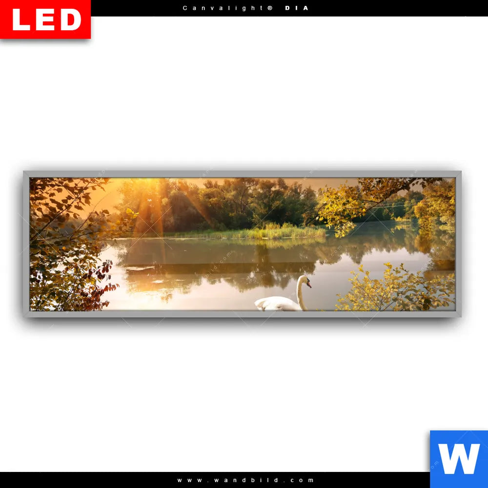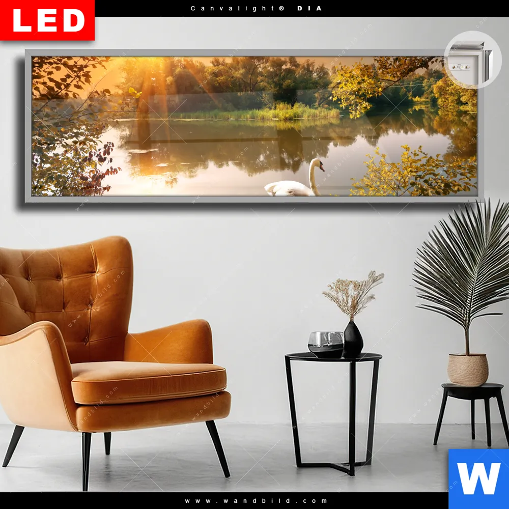 Canvalight® DIA Leuchtbild | Schwan im Teich | Panorama