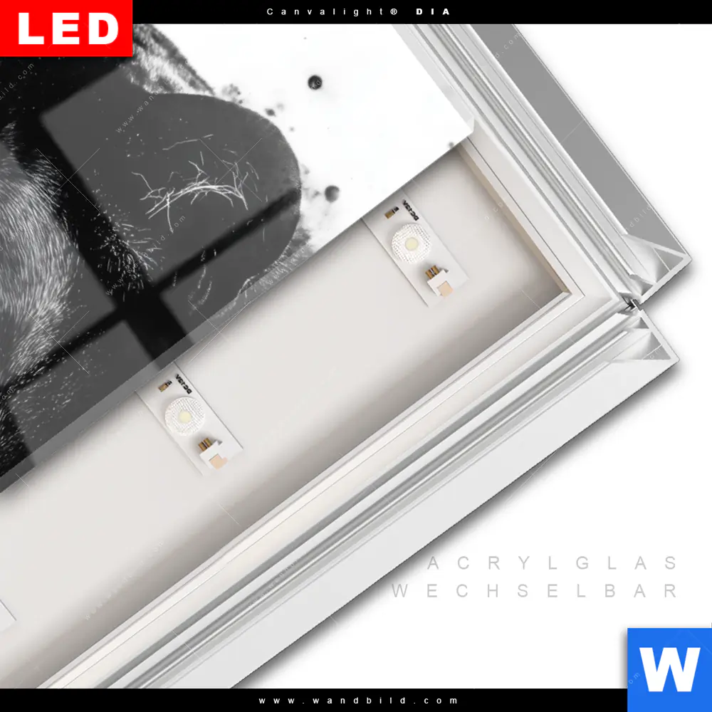 LED-Glasbild mit austauschbarem Acrylglas-Druck (Wechselbild)