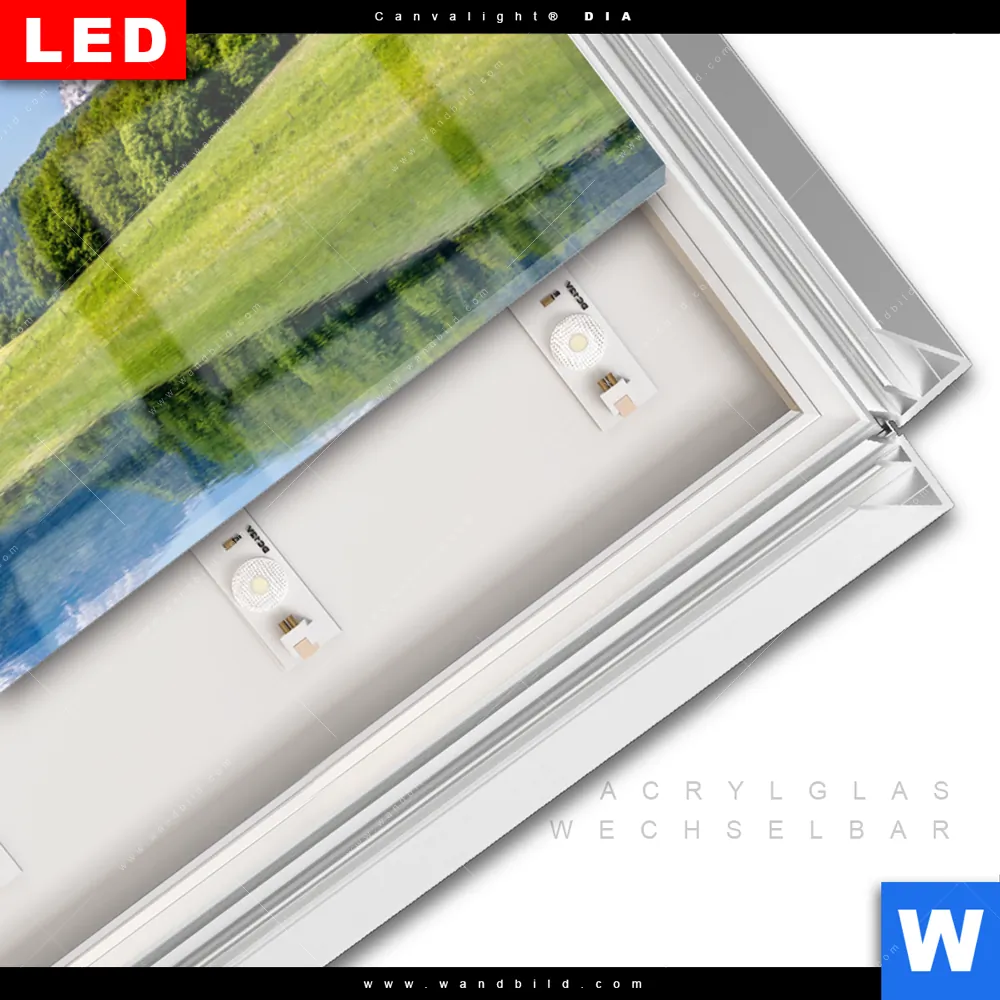 LED-Glasbild mit austauschbarem Acrylglas-Druck (Wechselbild)