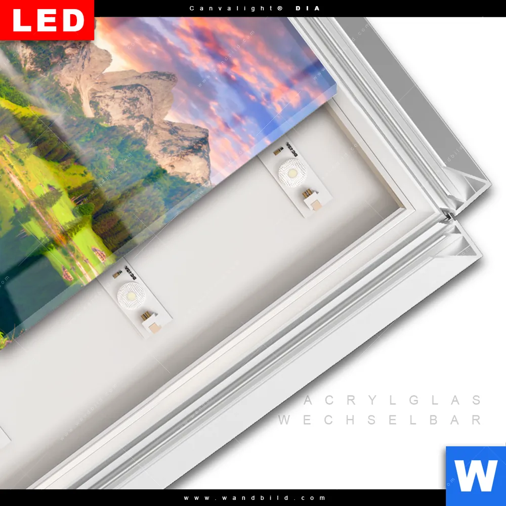 LED-Glasbild mit austauschbarem Acrylglas-Druck (Wechselbild)