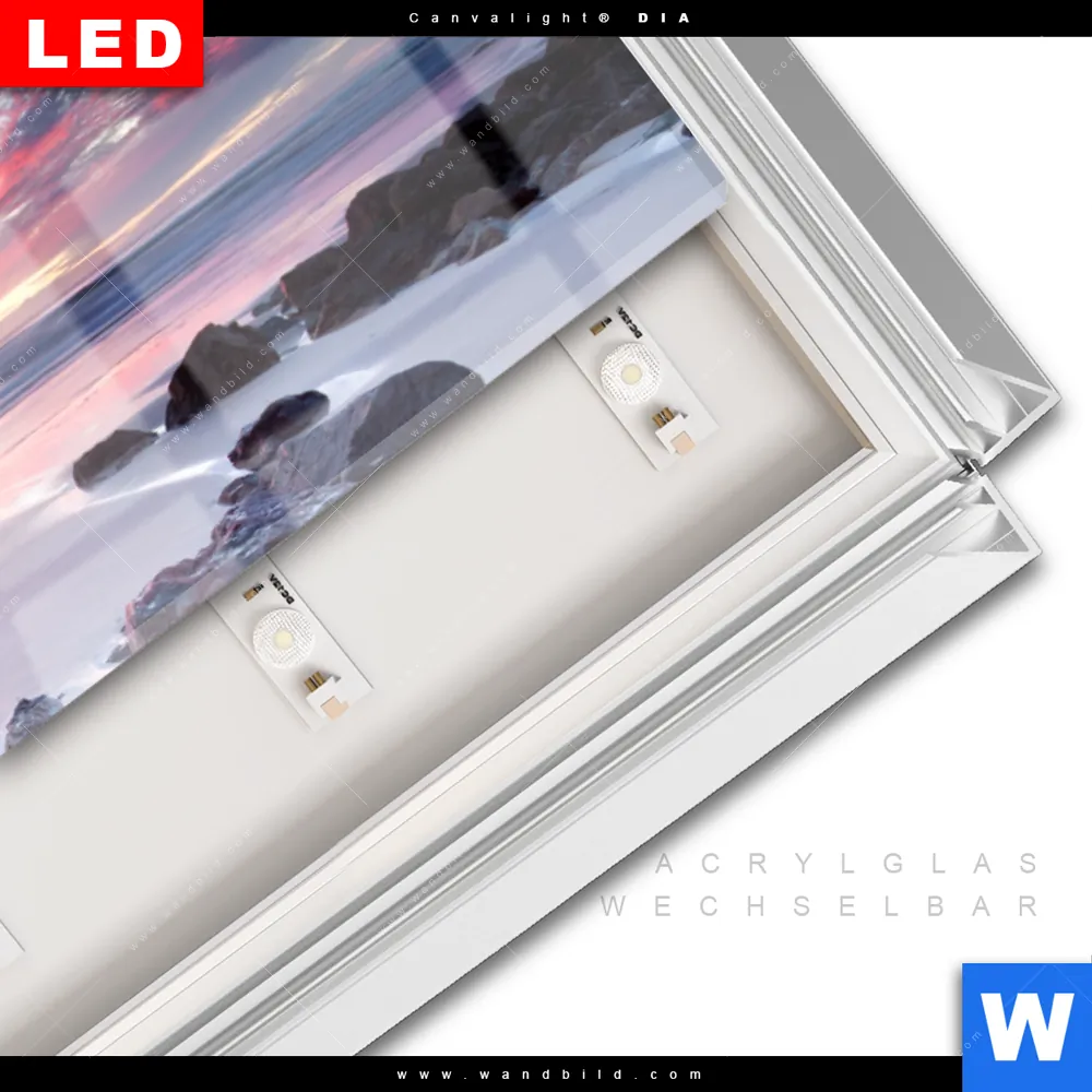 LED-Glasbild mit austauschbarem Acrylglas-Druck (Wechselbild)
