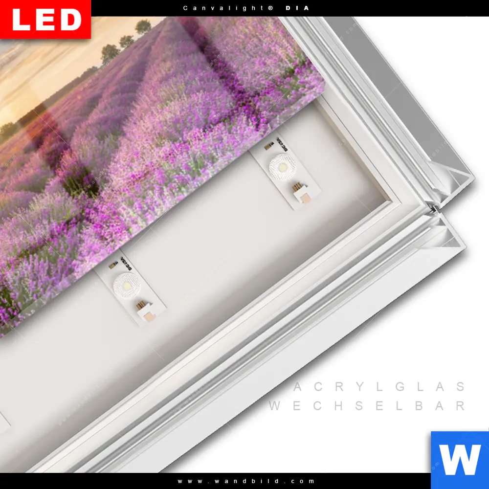 LED-Glasbild mit austauschbarem Acrylglas-Druck (Wechselbild)