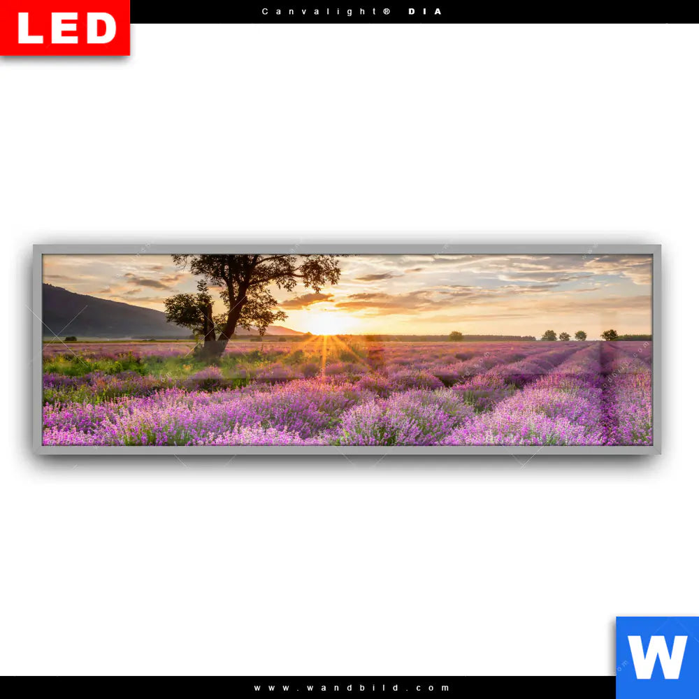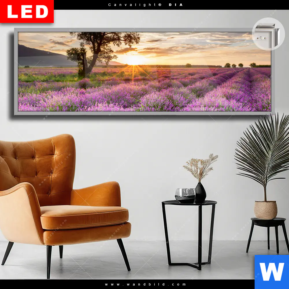 Canvalight® DIA Leuchtbild | Sonnenaufgang im Lavendelfeld | Panorama