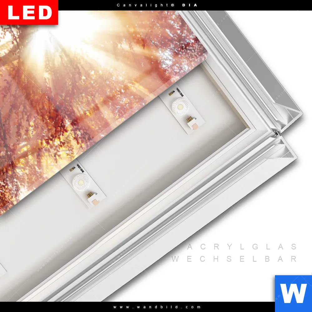 LED-Glasbild mit austauschbarem Acrylglas-Druck (Wechselbild)