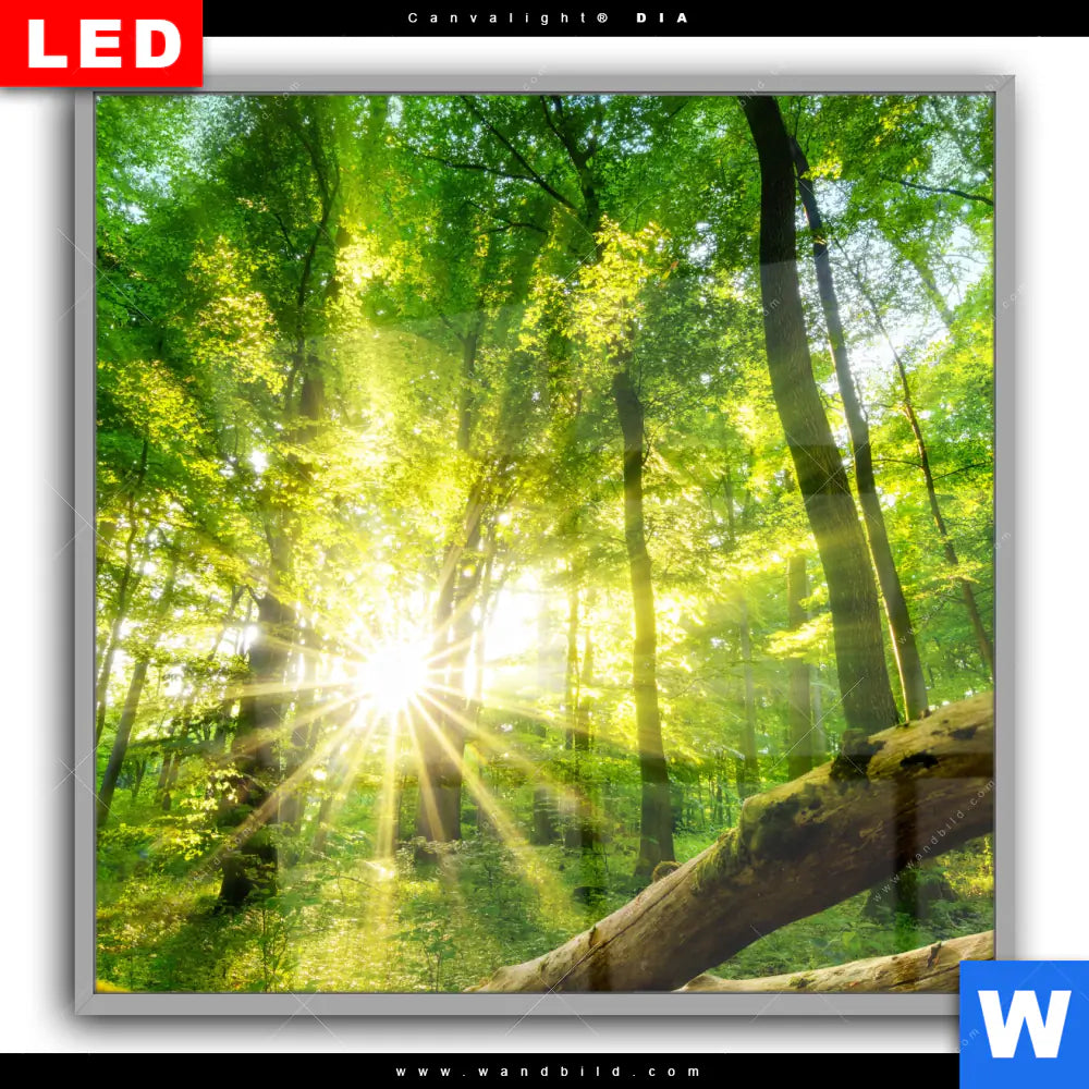 Canvalight® DIA Leuchtbild | Sonnenstrahlen im dichten Wald | Quadrat