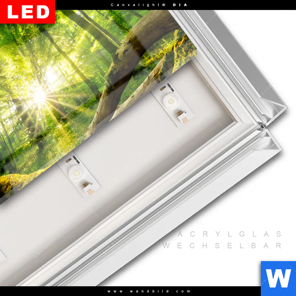 LED-Glasbild mit austauschbarem Acrylglas-Druck (Wechselbild)
