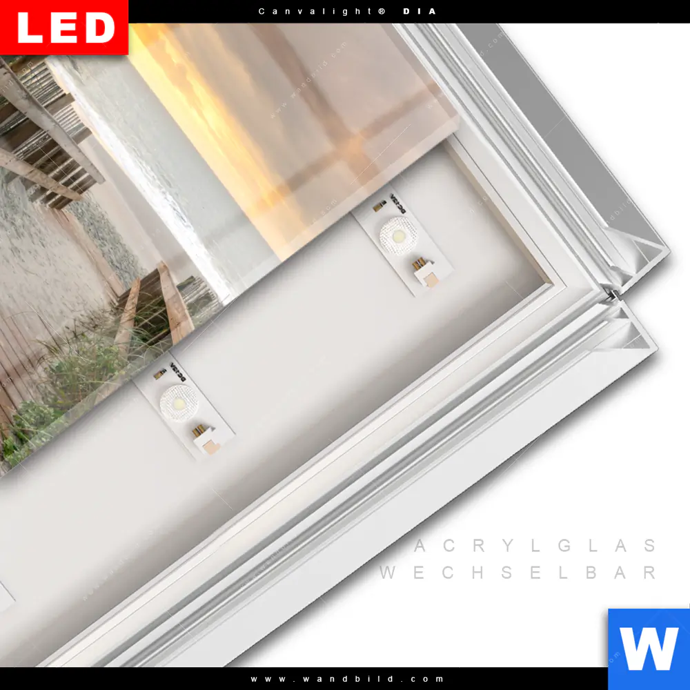 LED-Glasbild mit austauschbarem Acrylglas-Druck (Wechselbild)