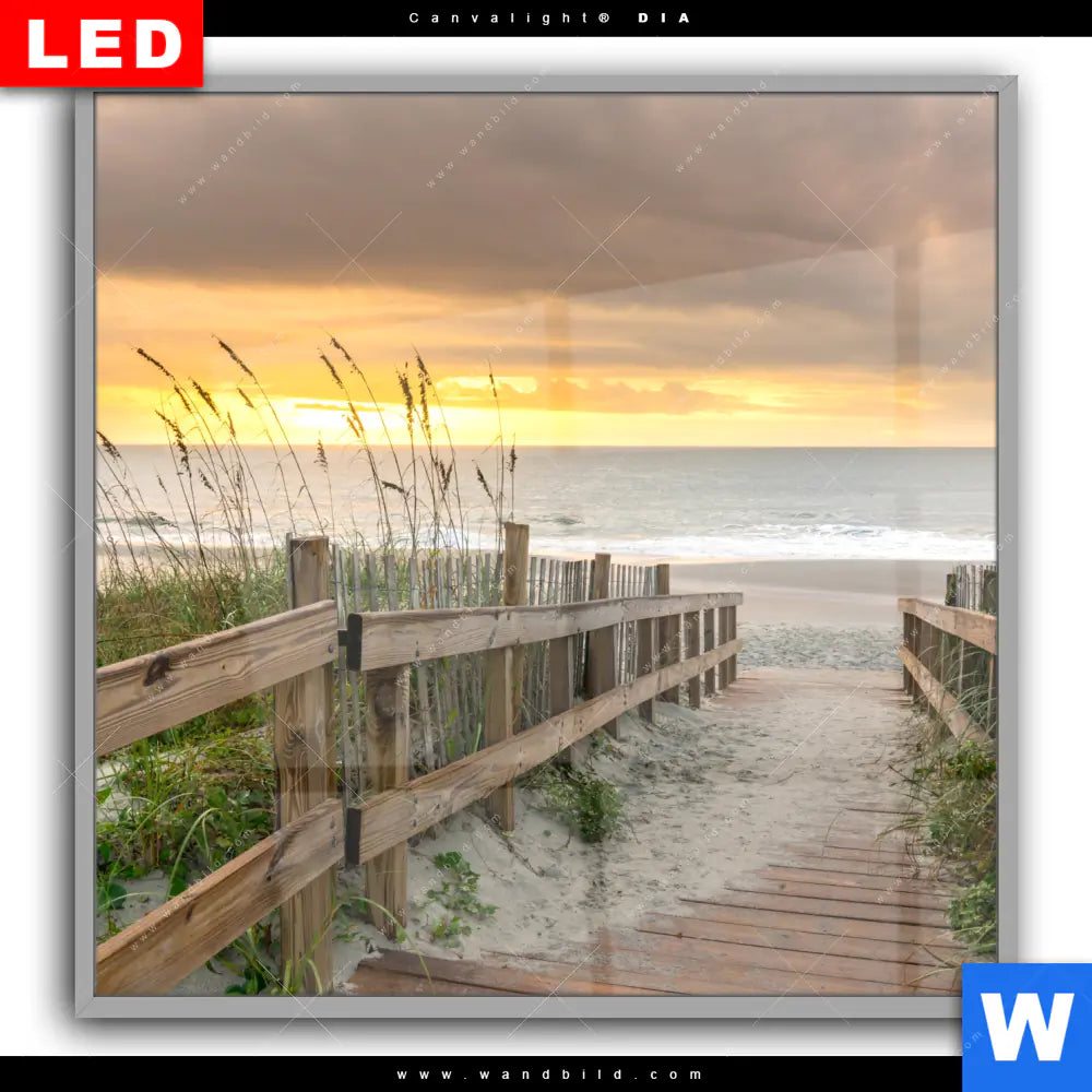 Canvalight® DIA Leuchtbild | Sonnenuntergang am Strandweg | Quadrat