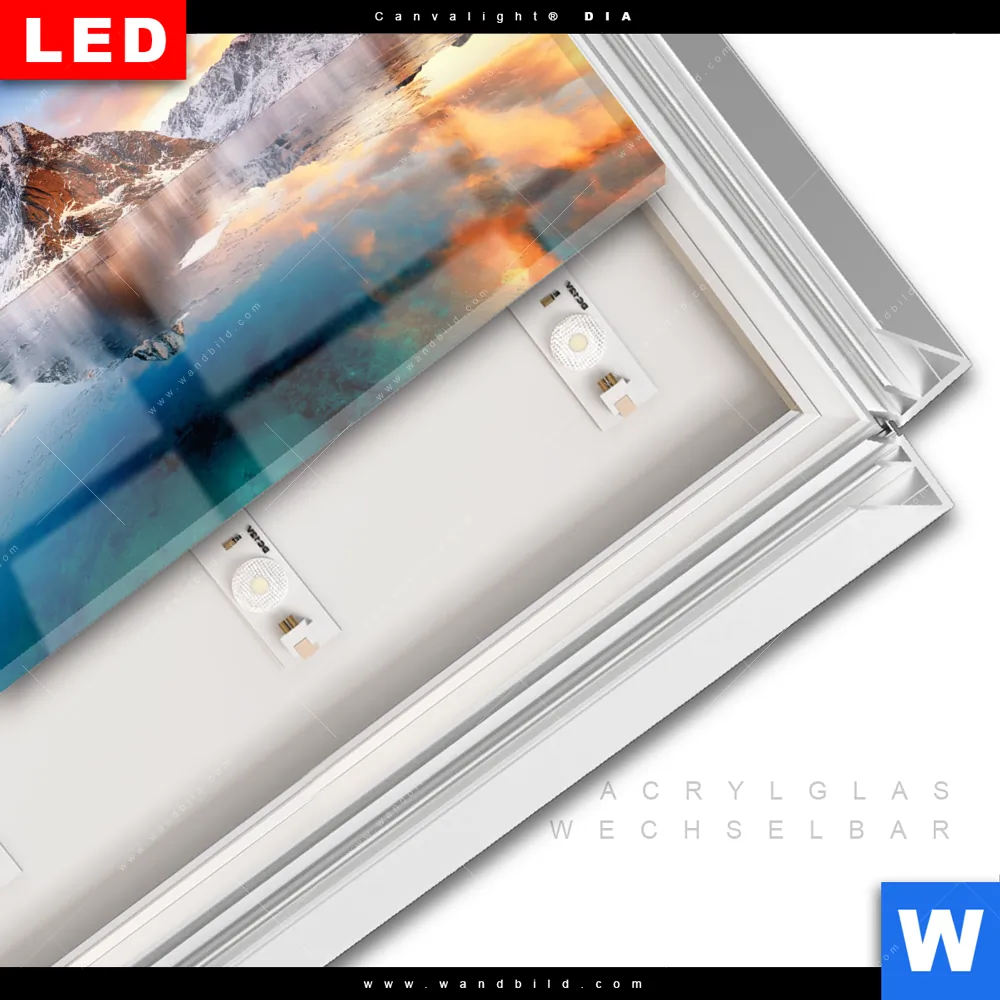 LED-Glasbild mit austauschbarem Acrylglas-Druck (Wechselbild)