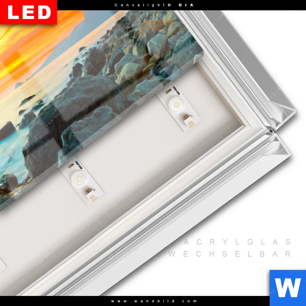 LED-Glasbild mit austauschbarem Acrylglas-Druck (Wechselbild)
