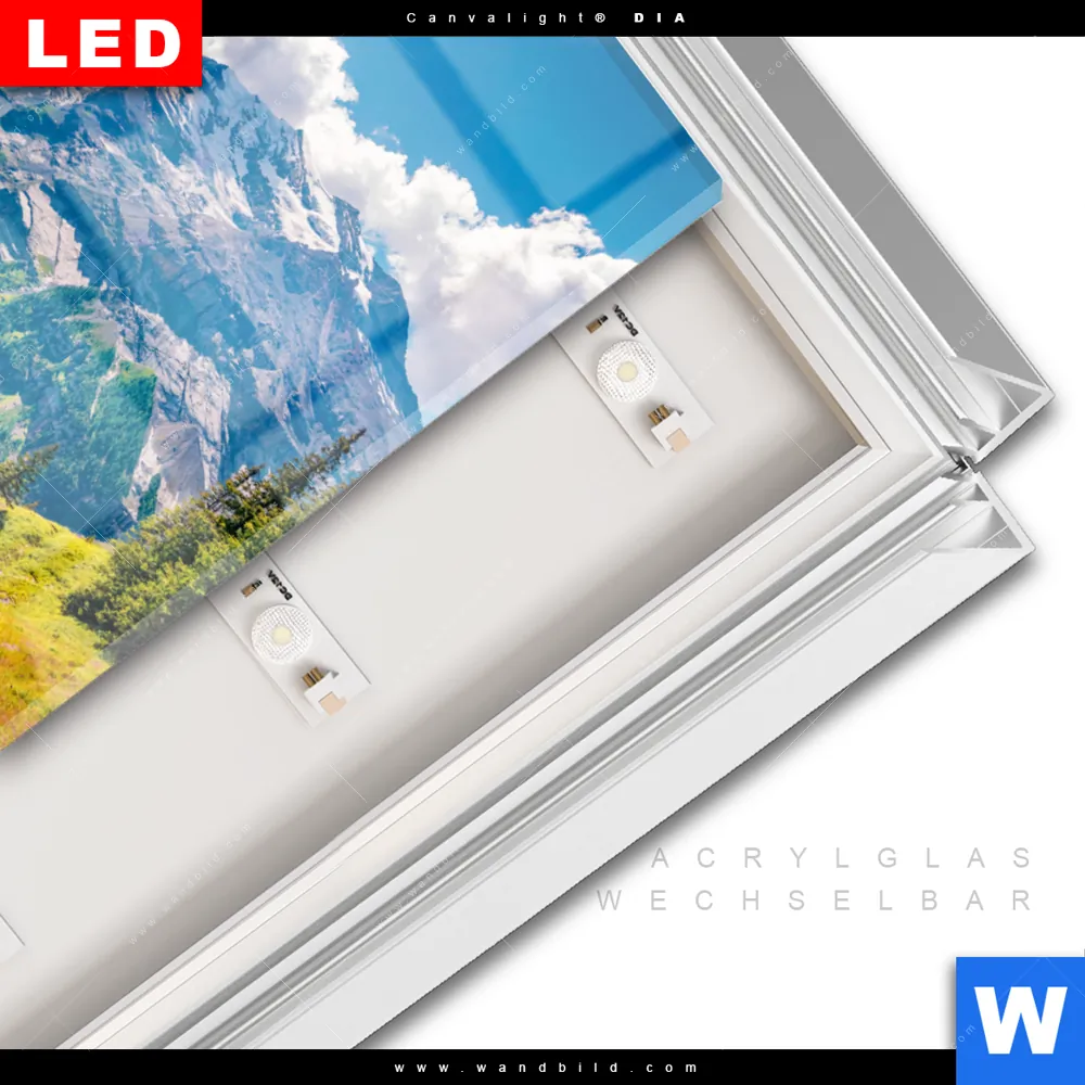 LED-Glasbild mit austauschbarem Acrylglas-Druck (Wechselbild)