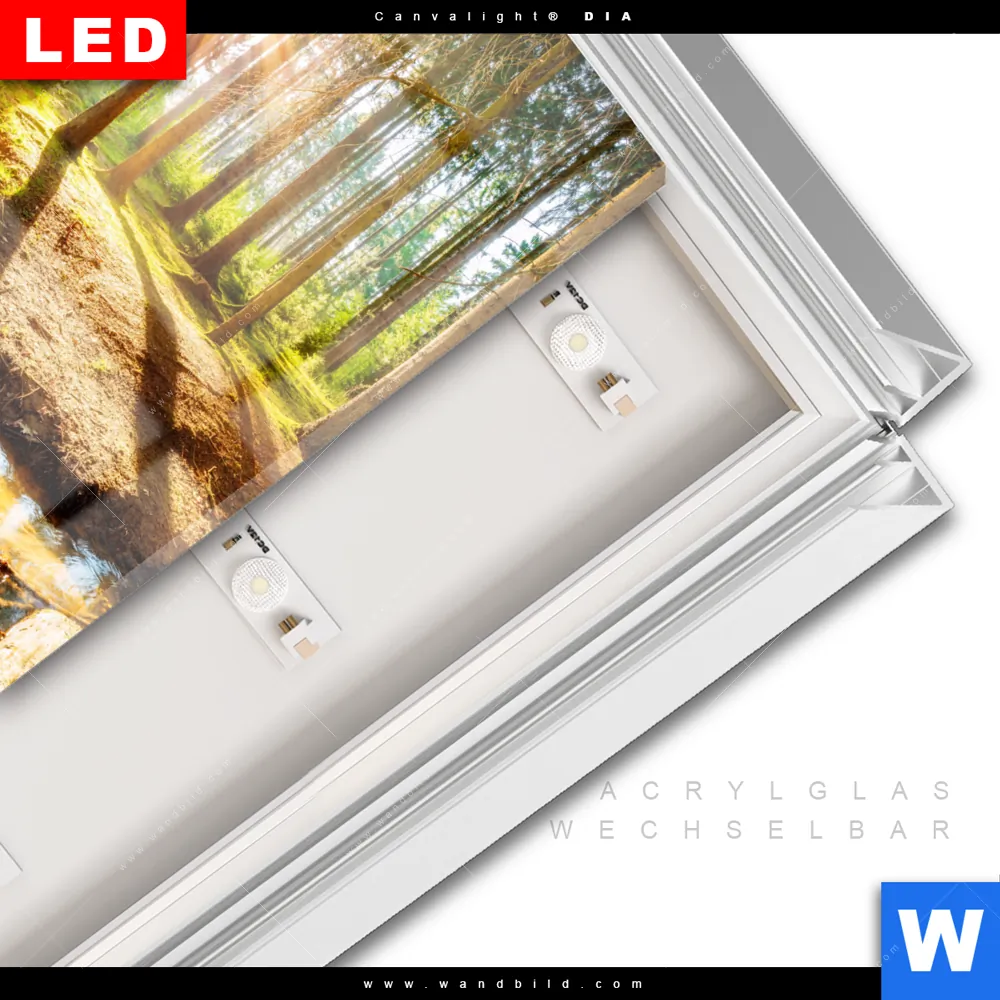 LED-Glasbild mit austauschbarem Acrylglas-Druck (Wechselbild)