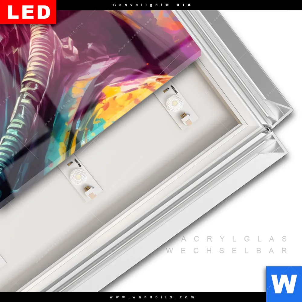 LED-Glasbild mit austauschbarem Acrylglas-Druck (Wechselbild)
