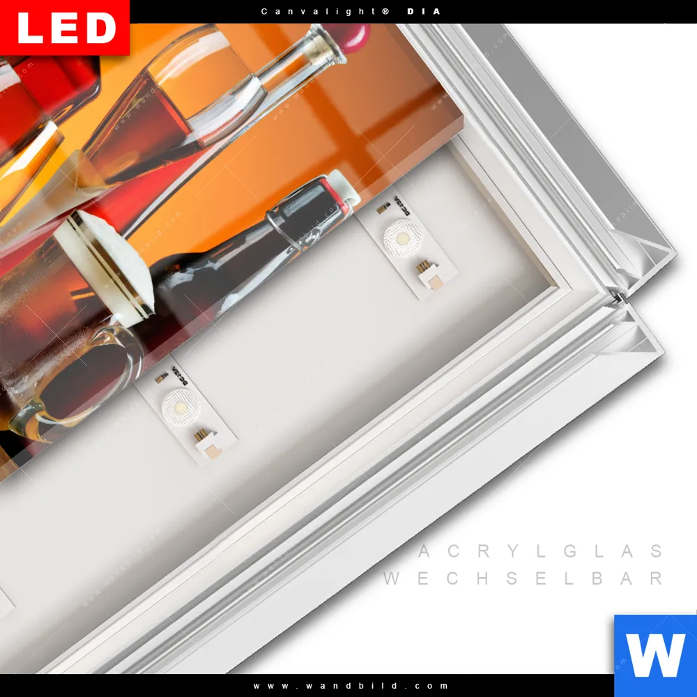 LED-Glasbild mit austauschbarem Acrylglas-Druck (Wechselbild)