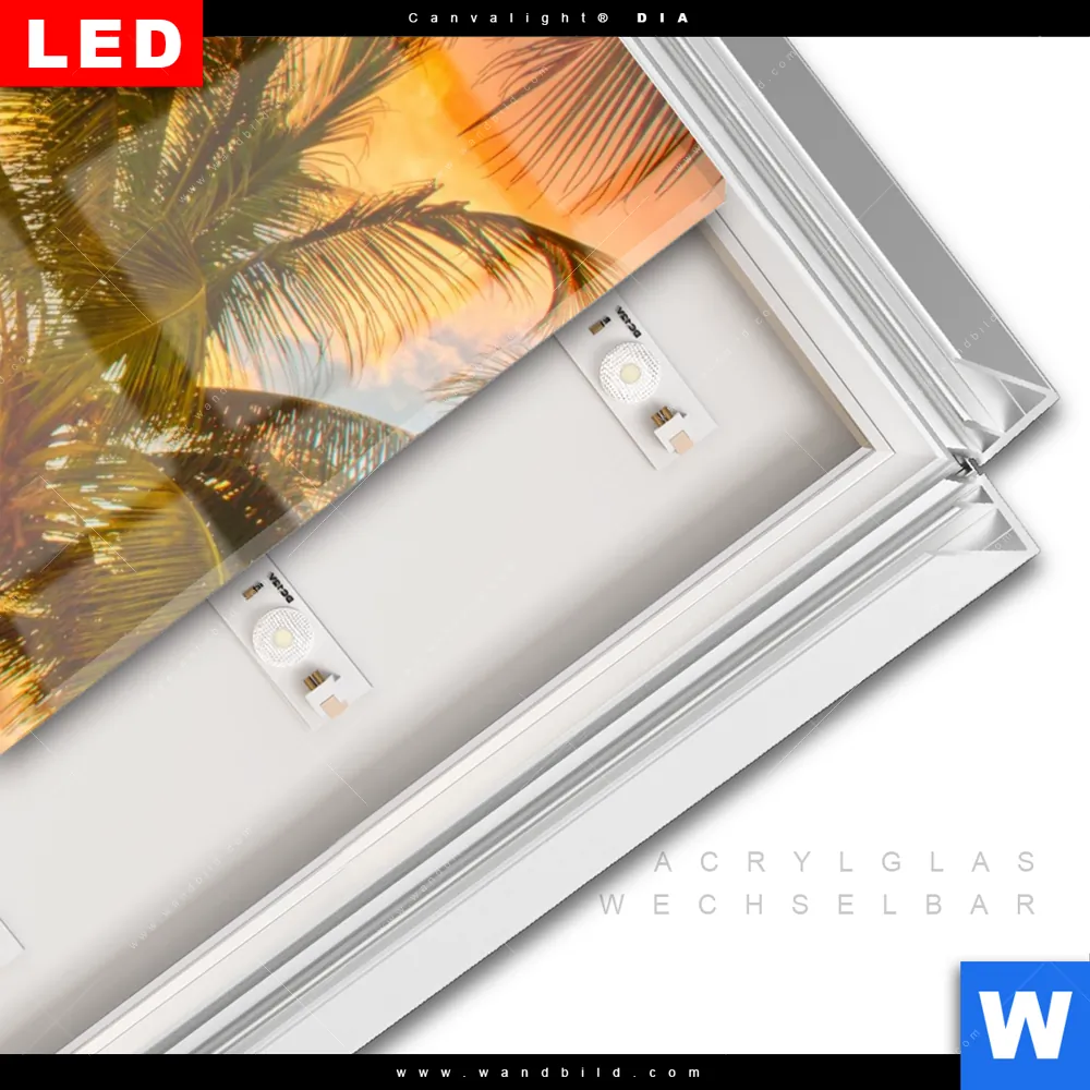 LED-Glasbild mit austauschbarem Acrylglas-Druck (Wechselbild)