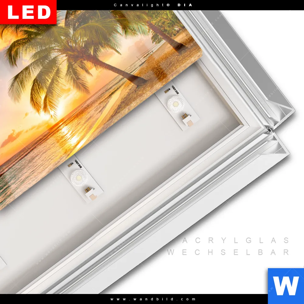 LED-Glasbild mit austauschbarem Acrylglas-Druck (Wechselbild)