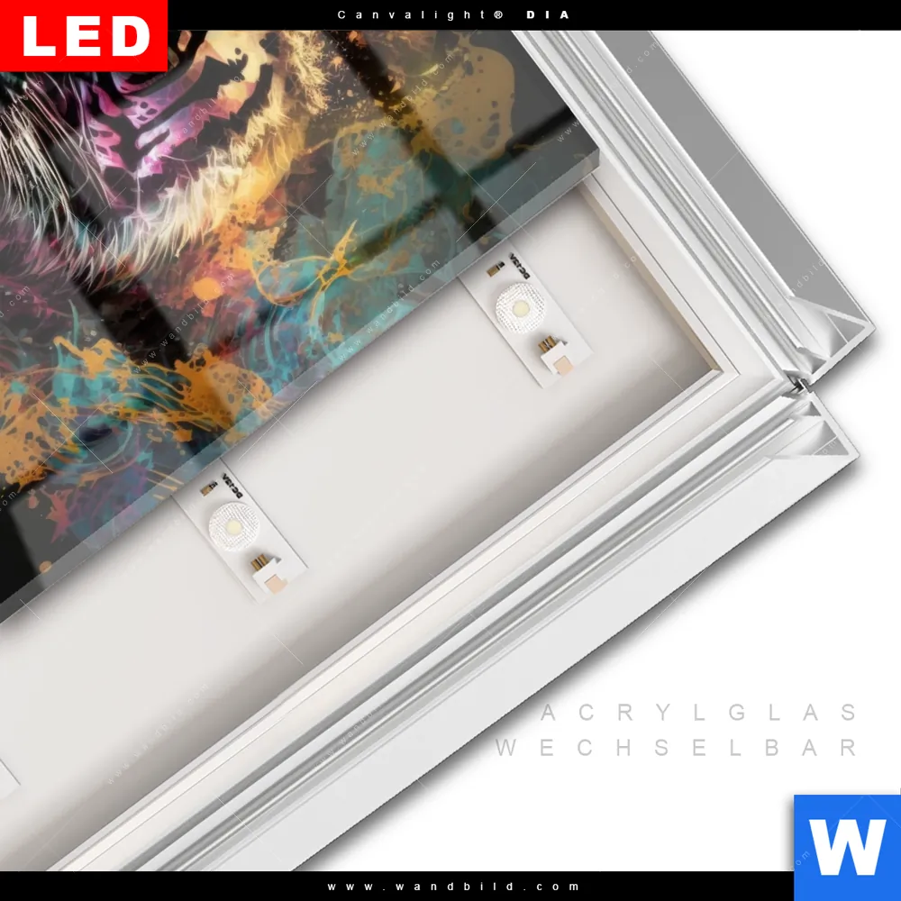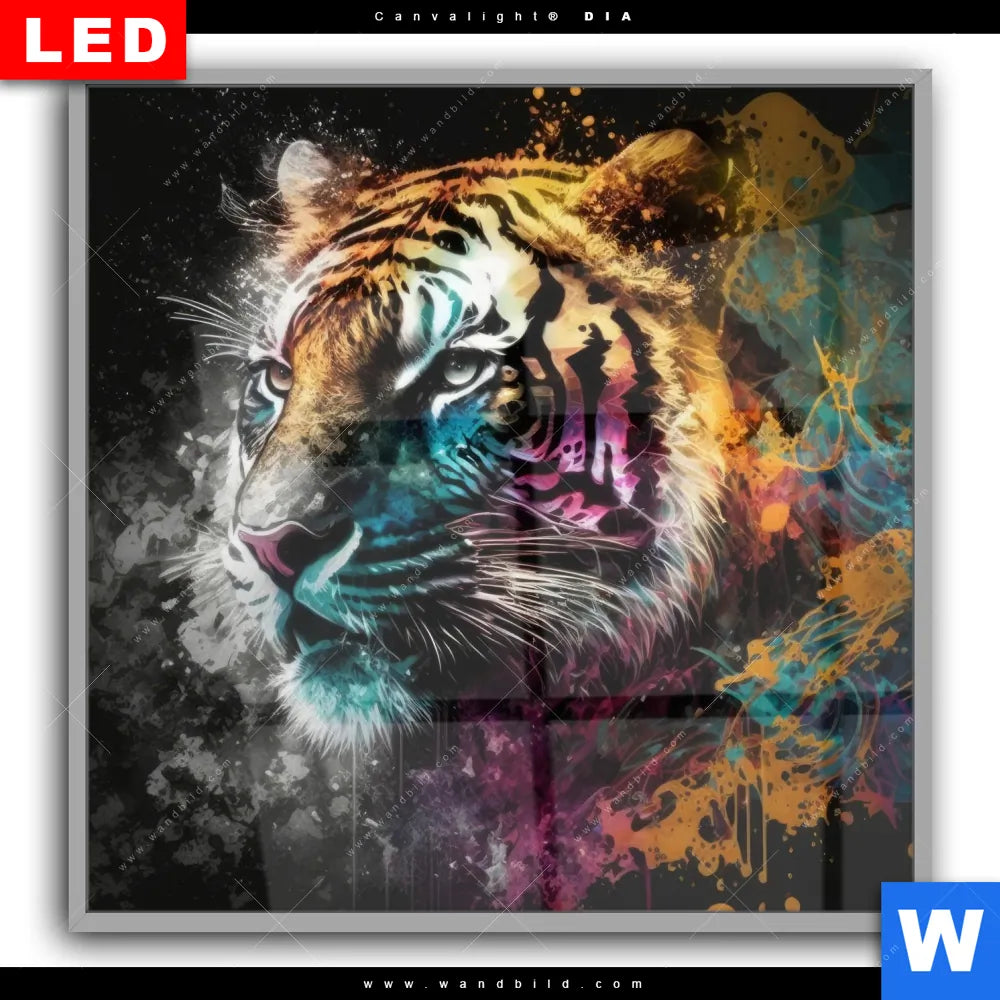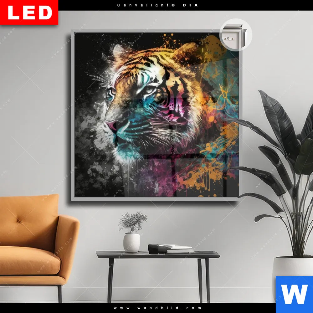 Canvalight® DIA Leuchtbild | Tiger im Farbrausch | Quadrat