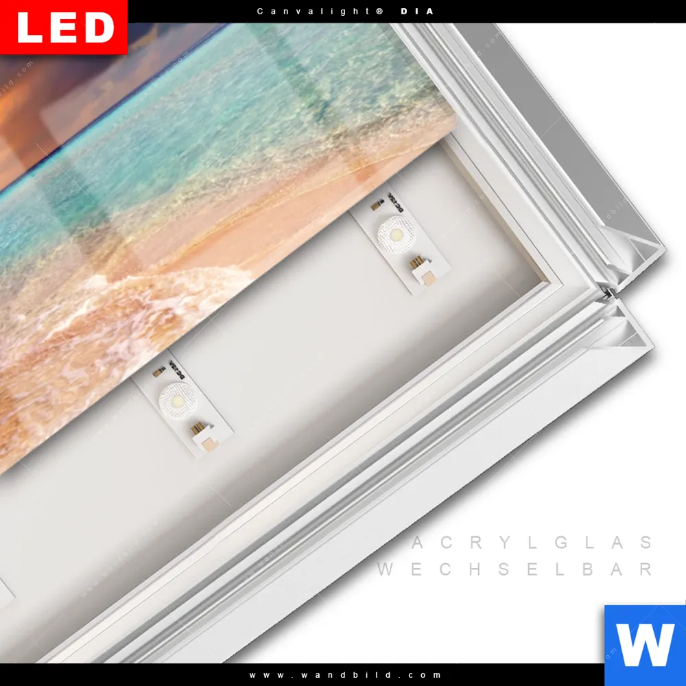 LED-Glasbild mit austauschbarem Acrylglas-Druck (Wechselbild)