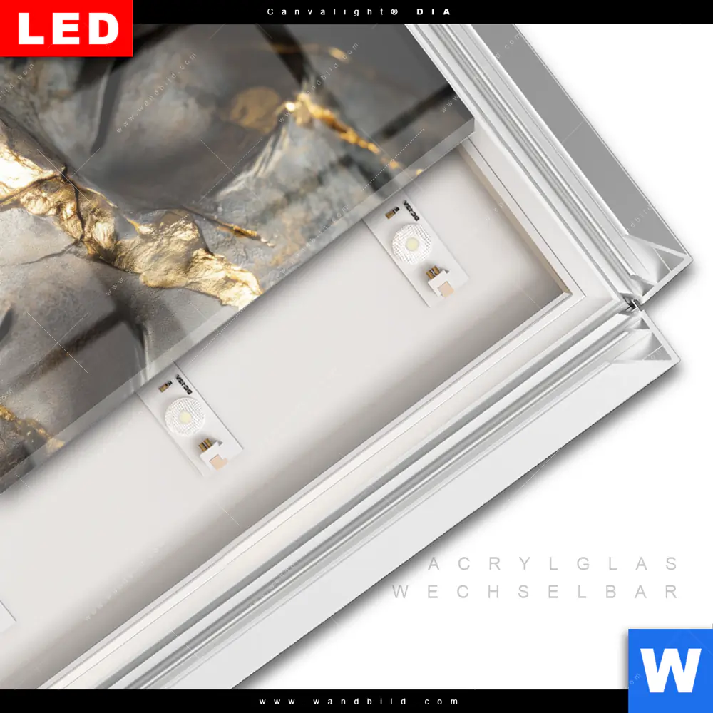 LED-Glasbild mit austauschbarem Acrylglas-Druck (Wechselbild)