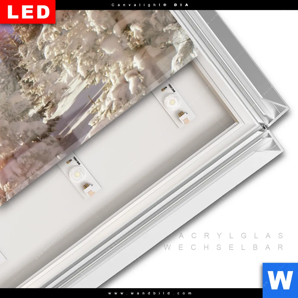 LED-Glasbild mit austauschbarem Acrylglas-Druck (Wechselbild)