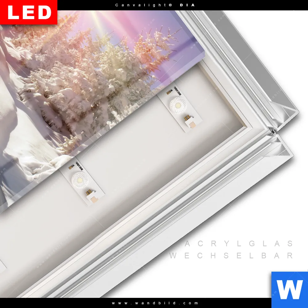 LED-Glasbild mit austauschbarem Acrylglas-Druck (Wechselbild)