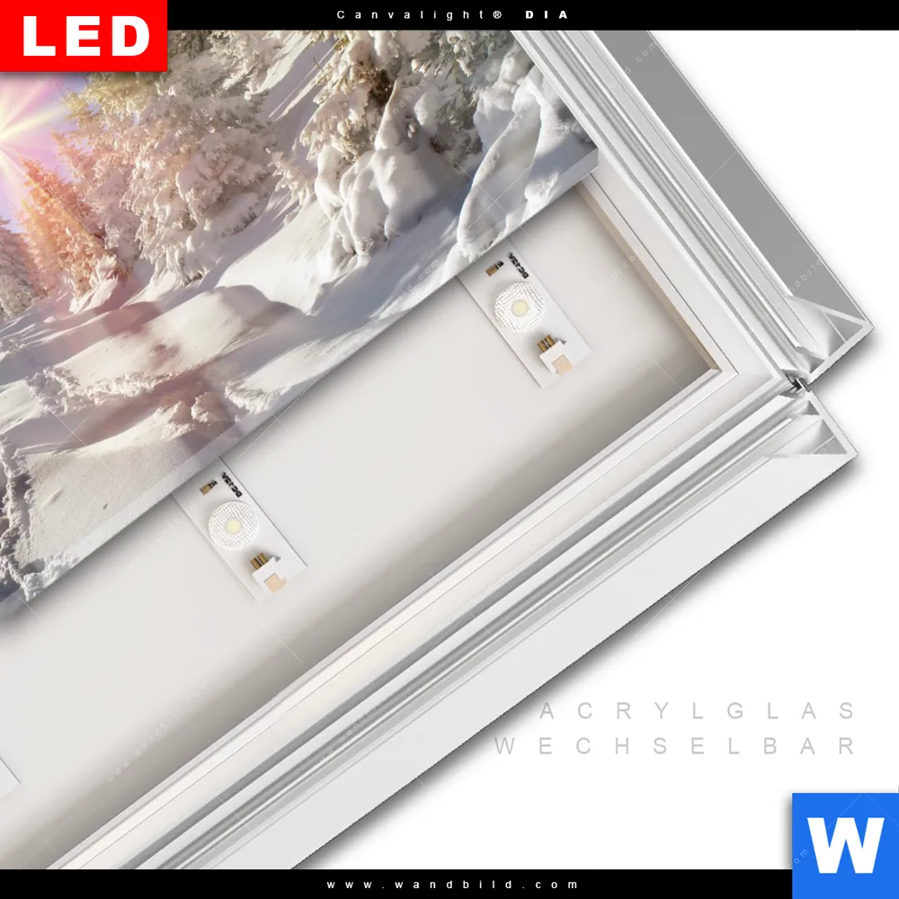 LED-Glasbild mit austauschbarem Acrylglas-Druck (Wechselbild)