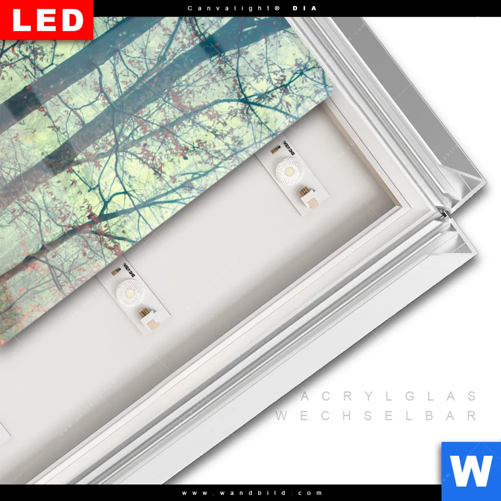 LED-Glasbild mit austauschbarem Acrylglas-Druck (Wechselbild)